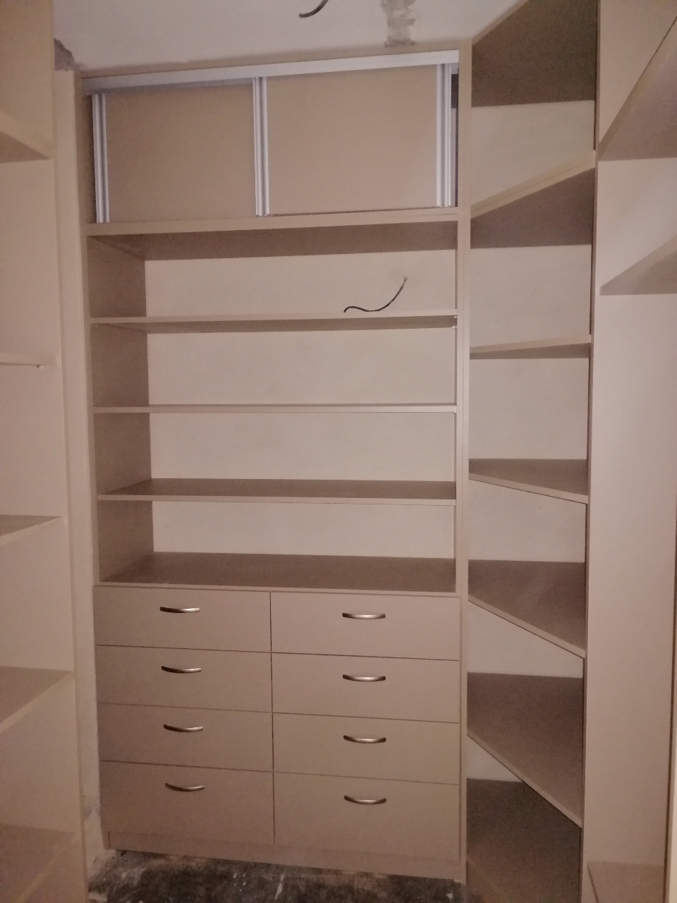 Skříně vestavné nebo samostané, zařízení šaten apod. Tyto skříně jsou většinou vyrobeny v kombinaci přírodního dřeva a laminovaných či dýhovaných materiálů.